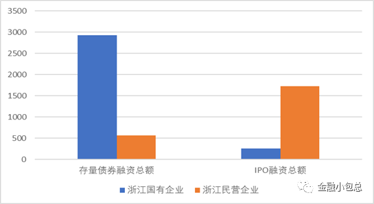 存量的債券中,浙江民營企業債券融資規模合計1338.79億元,浙江國有企業(不含金融機構)債券融資規模合計8989.41億元。尤其是2019年以來,浙江民營企業債券融資規模僅為566.79億元,相比之下浙江的國有企業(不含金融機構)融資規模高達2926.61億元,是民營企業融資規模的五倍。
