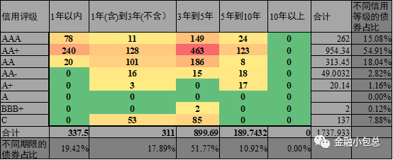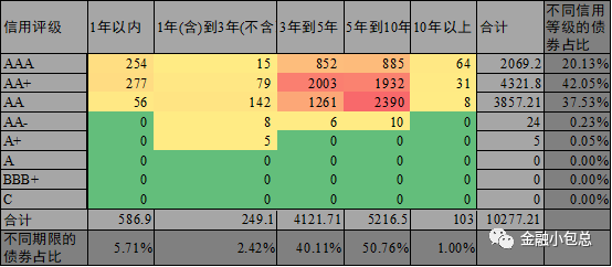 浙江國有企業不同期限、不同信用等級的債券發行金額分布情況(單位:億元)