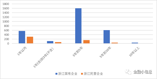 而浙江的國有企業發債期限分布相對均勻,幾乎全部在3年以上,集中在5到10年,其次是3到5年,兩個期限段的合計占比達到90.87%。浙江發行5年期限以上債券的國有企業合計一共有361家,且2018年以后發行的有52家。