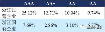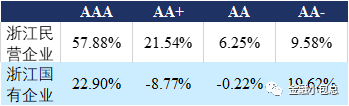 浙江民營企業是全國民營企業的杰出代表,大部分是有幾十年制造業實力積累的,就是那么一個群體,也在債券市場中受到極大的歧視,發債企業很少有能給到AA+及以上的信用評級,而且就算是AA+以上的民營企業也只能發行短期限的融資工具,更甚者不管這個企業的信用資質到底如何,只要是民企,它的債券發行利率就是比國企要高;隨著信用等級的下降,民企和國企之間利差更大。