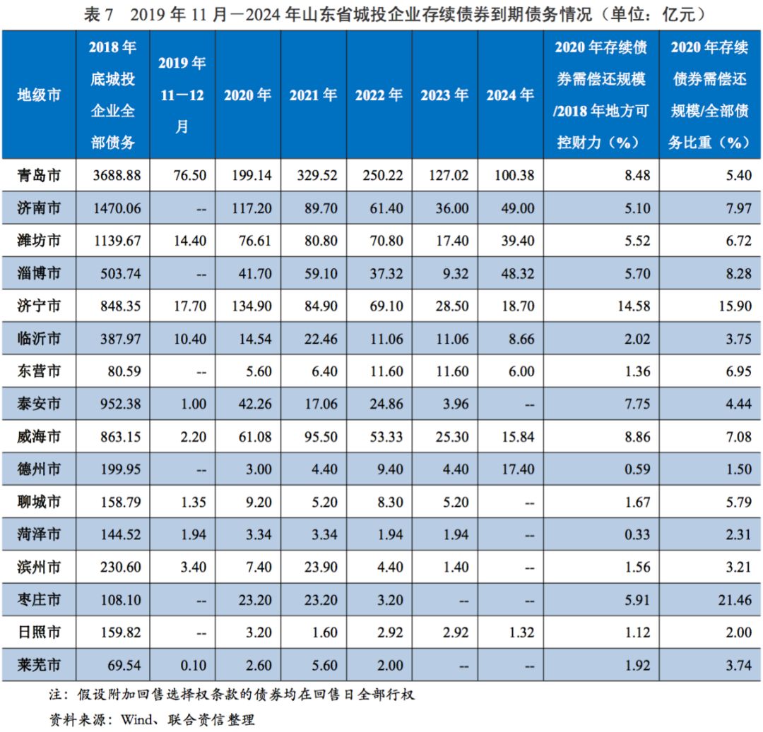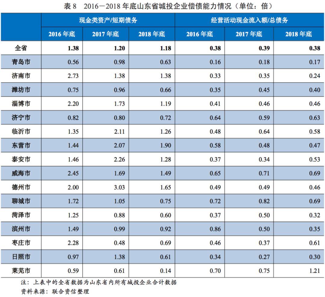 總體看,山東省經濟規模處于全國上游水平,一般公共預算收入排名全國前列,整體債務負擔輕。山東省各地級市經濟發展分化程度較高,其中青島市等沿海城市及省會濟南市的經濟和財政實力明顯高于其他地級市,發債城投企業主要集中在上述區域。山東省東部沿海城市和省會濟南市的經濟和財政實力明顯高于其他地級市。近年來,山東省城投企業債務負擔持續增長,其中青島市、濟南市、菏澤市和泰安市的城投企業債務負擔較重。山東省大部分地級市城投企業的償債能力及籌資力度有所下降,部分地級市城投企業融資壓力明顯加大,未來兩年山東省存續城投債券將面臨集中兌付高峰期。從外部支持看,山東省城投企業全部債務高于地方政府債務余額,考慮政府支持后山東省城投企業整體的償債能力一般。