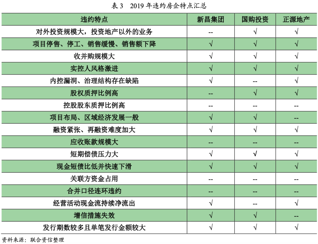 2019年違約房企仍以中小型民營為主,產品業態選擇布局長周期項目,周轉拉長,回款較慢;過度多元投資,增加債務負擔,新業務無法實現穩定收益及有效現金流,反而進一步削弱主業競爭力,流動性壓力不斷加大。在行業下行、信用環境收緊、融資受限等因素影響下,違約企業自身在經營管理等方面存在的諸多問題凸顯,之前盲目舉債集中到期,資金鏈最終斷裂。