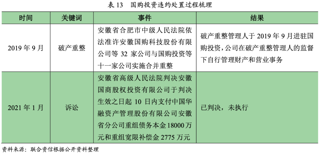 總結:違約后,國購投資與破產重整管理人積極引進重整投資人并參與談判,采取公司自營模式重整,旗下部分項目陸續復工交付,但公司目前大部分在建項目仍處于停工狀態,銷售回款受到嚴重影響,最終能否重整成功仍存在不確定性。