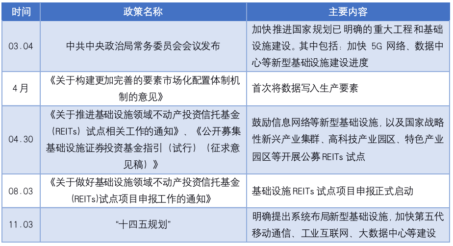 關于基礎設施和數(shù)據(jù)中心的主要政策(2020年發(fā)布)