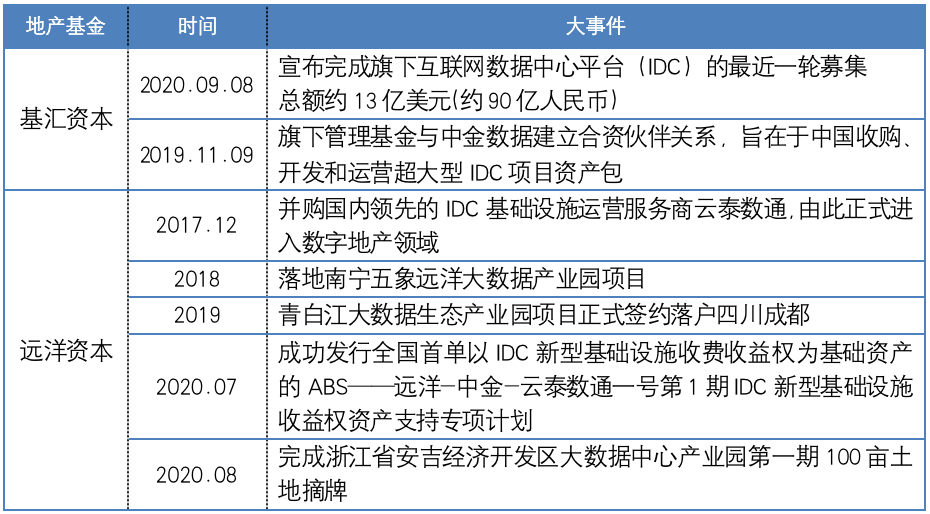 基匯資本&遠洋資本數(shù)據(jù)中心大事件一覽