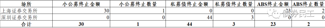 根據(jù)上海證券交易所和深圳證券交易所公司債券項(xiàng)目信息平臺的公開信息,2022年5月終止的債券項(xiàng)目(小公募、私募債和ABS)金額合計(jì)為97億元,終止項(xiàng)目數(shù)量6只。