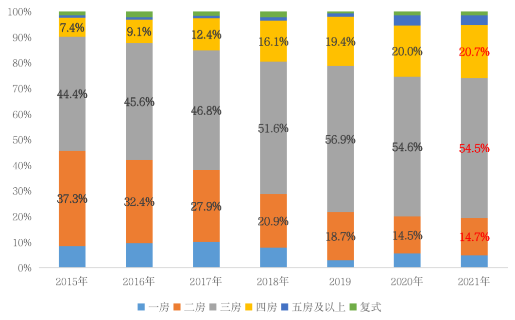 圖:2015-2021年194個樣本城市分戶型成交套數占比