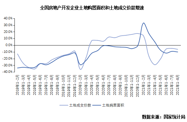 據(jù)國家統(tǒng)計局?jǐn)?shù)據(jù):1—8月,房地產(chǎn)開發(fā)企業(yè)土地購置面積10733萬平方米,同比下降10.2%;土地成交價款6647億元,下降6.2%;二者較1-6月降幅分別擴(kuò)大1.7PCT和0.6PCT。三季度整體土地市場進(jìn)一步降溫,房企土地購置面積和成交價款進(jìn)一步走低。