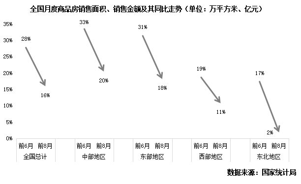商品房銷售來看,隨著包括信貸、融資、土地等各方面調(diào)控預(yù)期不變,樓市下行壓力仍會加劇。