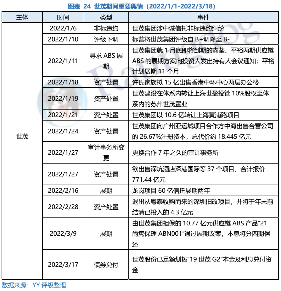 具體來看,熱點主體方面,世茂一方面尋求金融機構支持,對期間內到期的ABS及信托進行展期,另一方面積極處置資產回籠資金。3月17日,世茂股份足額劃轉“19世茂G2”本息兌付資金,表明公司保公開債兌付的姿態。