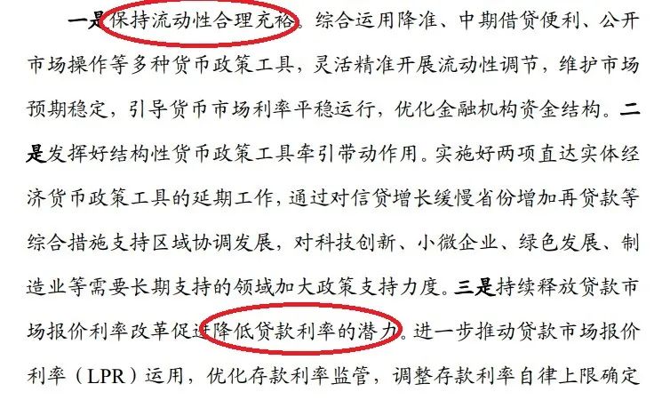 “內容摘要”部分,報告開宗明義第一點就說了:保持流動性合理充裕……