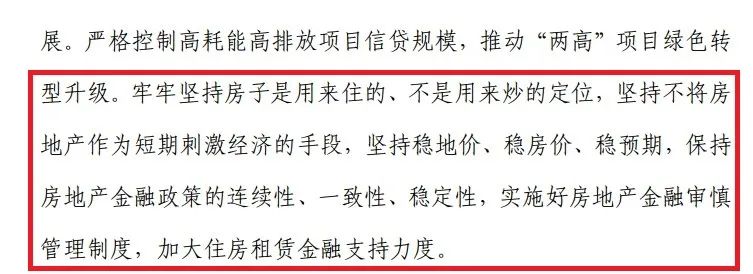 牢牢堅持房子是用來住的、不是用來炒的定位,堅持不將房地產作為短期刺激經濟的手段,堅持穩地價、穩房價、穩預期,保持房地產金融政策的連續性、一致性、穩定性,實施好房地產金融審慎管理制度,加大住房租賃金融支持力度。