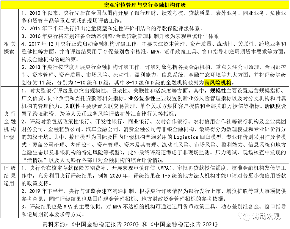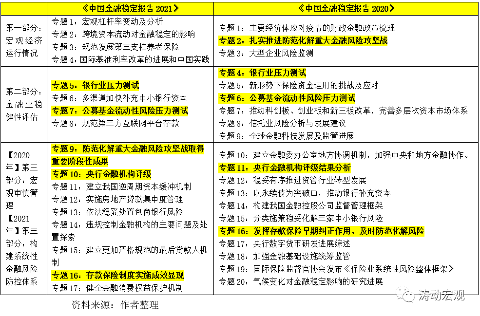 (三)2020年與2021年金融穩(wěn)定報(bào)告分別有20個(gè)主題和17個(gè)主題,其中有5個(gè)主題基本是相同的,即銀行業(yè)壓力測(cè)試、公募基金流動(dòng)性風(fēng)險(xiǎn)壓力測(cè)試、央行金融機(jī)構(gòu)評(píng)級(jí)結(jié)果分析、防范化解重大金融風(fēng)險(xiǎn)和存款保險(xiǎn)。