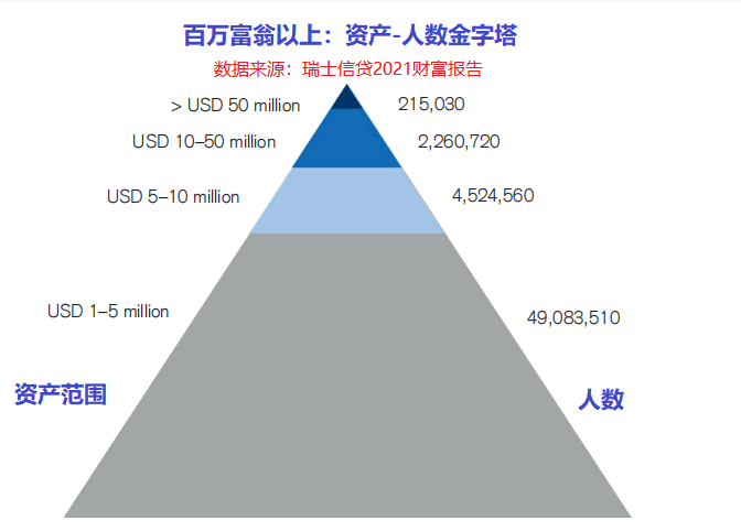 根據瑞士信貸的《2021年全球財富報告》:百萬富翁(美元計)及以上人群只占全球成年人口總數1.1%。
