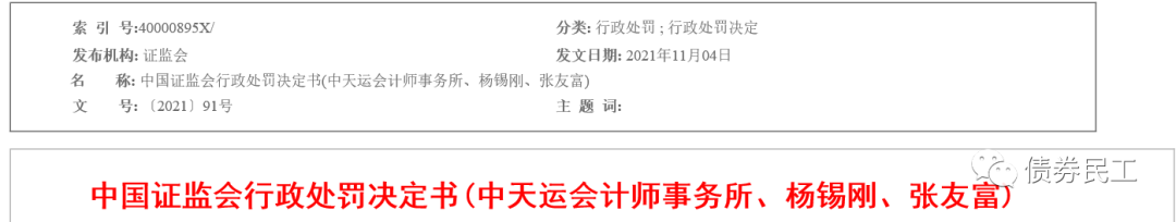 3、根據(jù)證監(jiān)會2021年11月4日公布的行政處罰決定書,中天運會計師事務所因為在山東勝通集團的審計過程中,“出具的勝通集團2013年至2017年年度審計報告存在虛假記載”和“對勝通集團2013年至2017年年度財務報表審計時未勤勉盡責”,被責令改正,沒收業(yè)務收入并罰款。