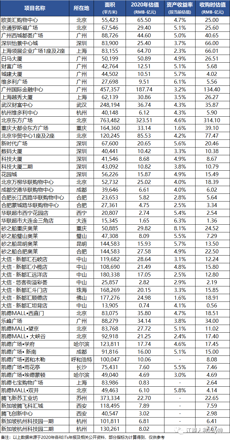 圖1:被境外REITs收購的商辦類項目(截至2020年)