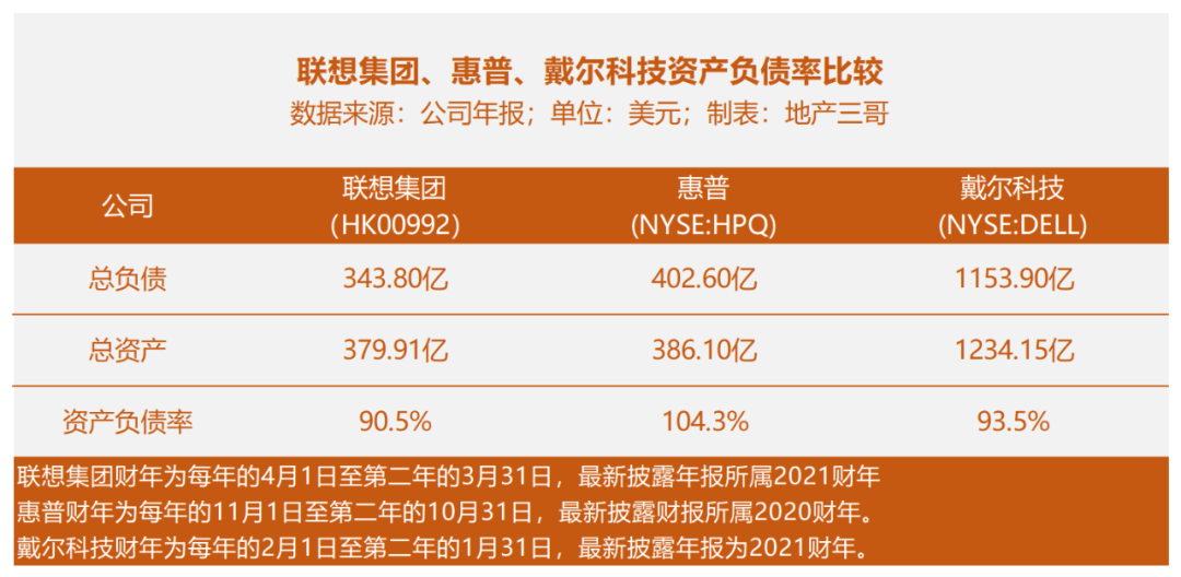 三家都是同行,橫向比較,聯(lián)想集團(tuán)高嗎?