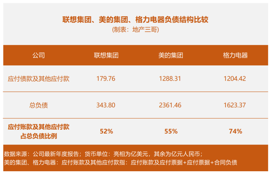 照這個邏輯,美的、格力這些經(jīng)營優(yōu)秀的公司都應(yīng)該立馬還錢,看看它們的負(fù)債結(jié)構(gòu)比較: