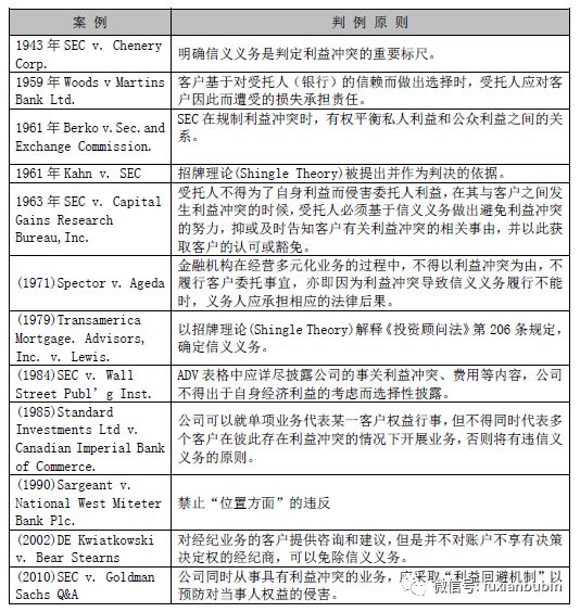 信義義務在引導市場良性發展,彌補財產、合同法律供給之不足等方面發揮著巨大的作用。伴隨著金融中介的快速發展,信義義務逐漸從民商事規則中突圍,在金融領域得到廣泛的應用,并“根據金融市場健康發展的需要”,不斷的衍生出新的規則。雖然信義義務表現出較強的規則化趨勢,但是,出于回應金融市場的發展變化的需要,法院的審理依然保持著適當的彈性,“在對特定關系的性質進行評估的基礎上,來確定有關當事人是否應當承擔信義義務。”經過諸多判例的發展和完善,信義義務規制利益沖突的作用也漸趨成熟。