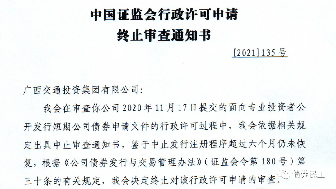 根據(jù)中國證監(jiān)會(huì)網(wǎng)站2021年11月2日披露的信息,有5只小公募公司債券被終止,終止的原因是中止注冊發(fā)行程序超過六個(gè)月仍未恢復(fù)。經(jīng)查詢《公司債券發(fā)行與交易管理辦法》,其中第三十條第八款“發(fā)行人中止發(fā)行上市審核程序超過證券交易所規(guī)定的時(shí)限或者中止發(fā)行注冊程序超過六個(gè)月仍未恢復(fù)”。因此上述公司債券的終止屬于正常事項(xiàng)。