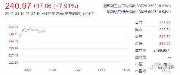 阿里巴巴美股(BABA)來看:截至我們此刻發稿,已經漲了7.91%,至240.97美元了。