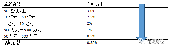 所以顯然的,就是存款金額越小,期限越不固定,對于銀行而言成本越低,簡稱“便宜錢”,反之單筆額度越大,成本越高,簡稱“貴錢”。