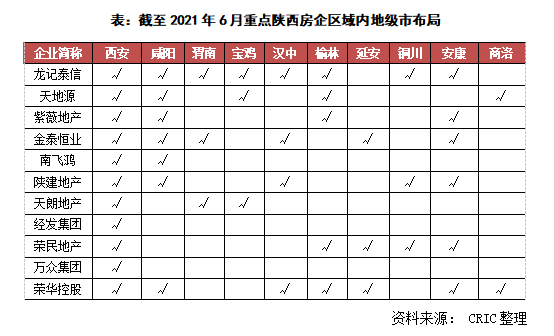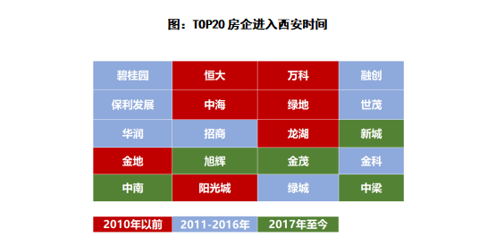 品牌房企入局西安較早,50強房企已有超過80%布局(部分略)
