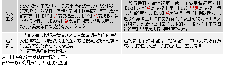 2、保護性條款,將差異化持有人會議及議案的生效條件