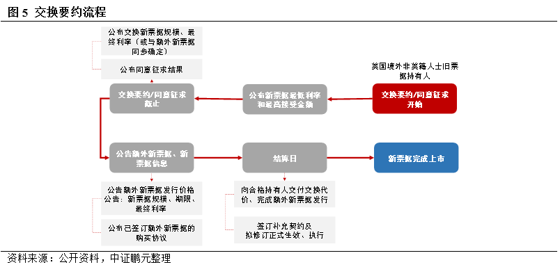 新票據利率和規模的確定,因是否同步發行額外新票據而有所差異。若無同步發行額外新票據,則新票據的利率可于交換要約公告中確認,與境內規定相似。若有同步發行額外新票據,在交換要約開始后將盡快確認交換新票據最低票面利率,以供持有人參考;于交換要約截止日,確定交換新票據最終利率(或與額外發行新票據時確定),以及對額外發行新票據進行定價,通常交換新票據和額外新票據的票面利率一致。注意,額外新票據的發行存在失敗的可能。從案例看,非困境交換要約,新票據的利率將有所提升。