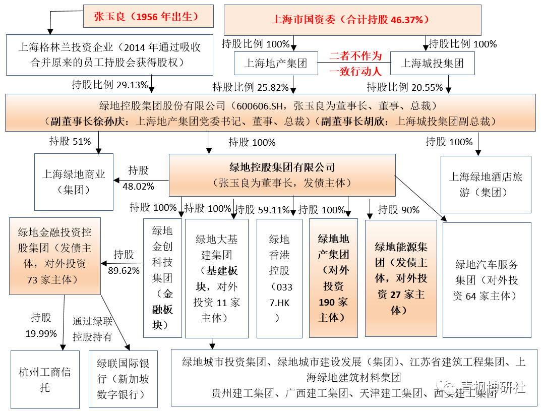 雖然上海的兩大國有股東(即上海市國資委均100%持股的上海地產(chǎn)集團和上海城投集團)分別持有綠地控股25.82%和20.55%的股權(quán)比例,但合計持股比例僅有46.37%,未超過50%,不能對綠地股份形成控制關(guān)系。