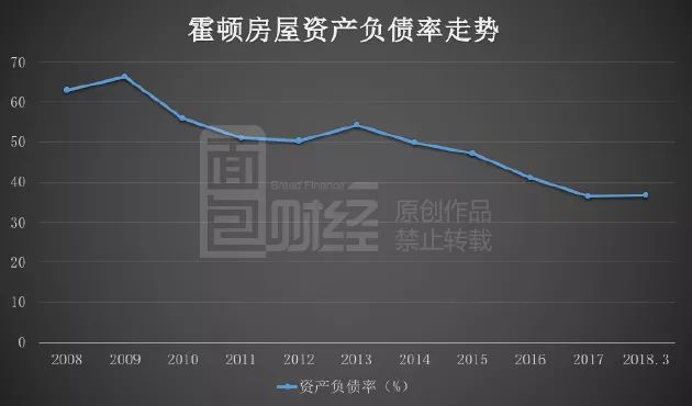 霍頓房屋的資產(chǎn)負債率從2008財年的62.84%降至2017財年的36.41%,截至2018年3月底,資產(chǎn)負債率為36.66%,仍保持低位。