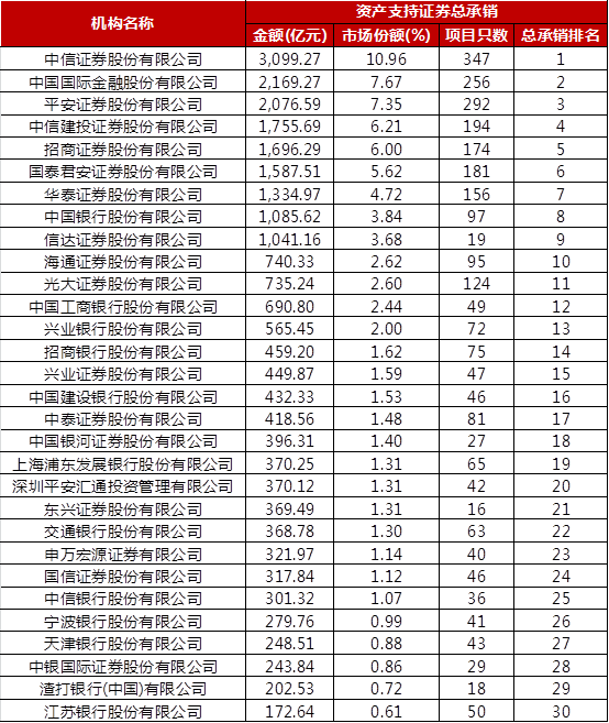 圖表2. 銀保監會主管ABS承銷情況(部分)