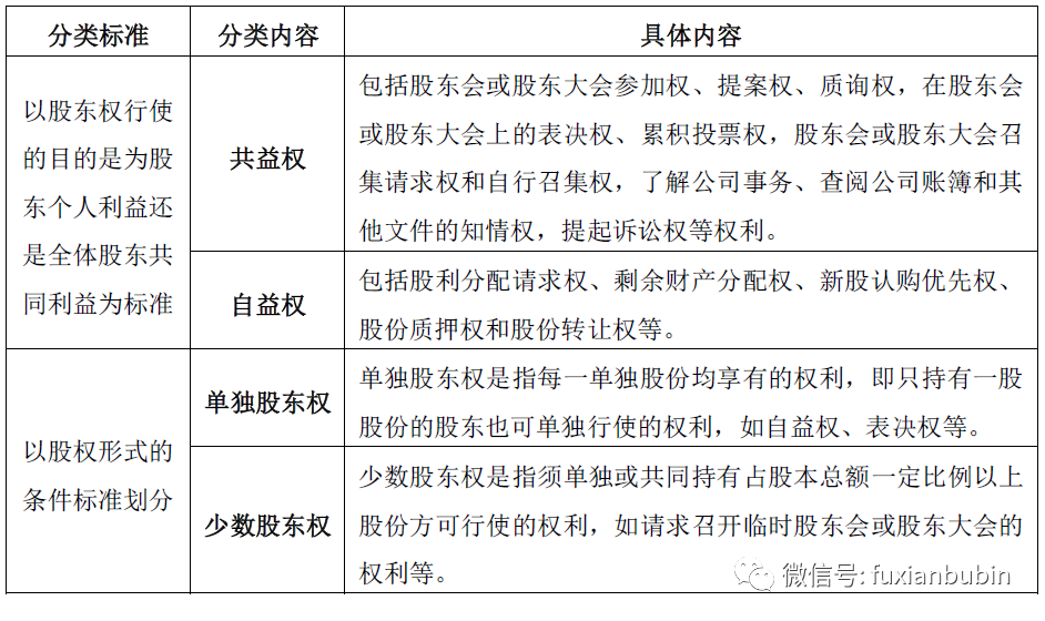 一是股東權的分類。股東權是基于股東資格而享有的權利,公司股東依法享有資產收益、參與重大決策和選擇管理者等權利。