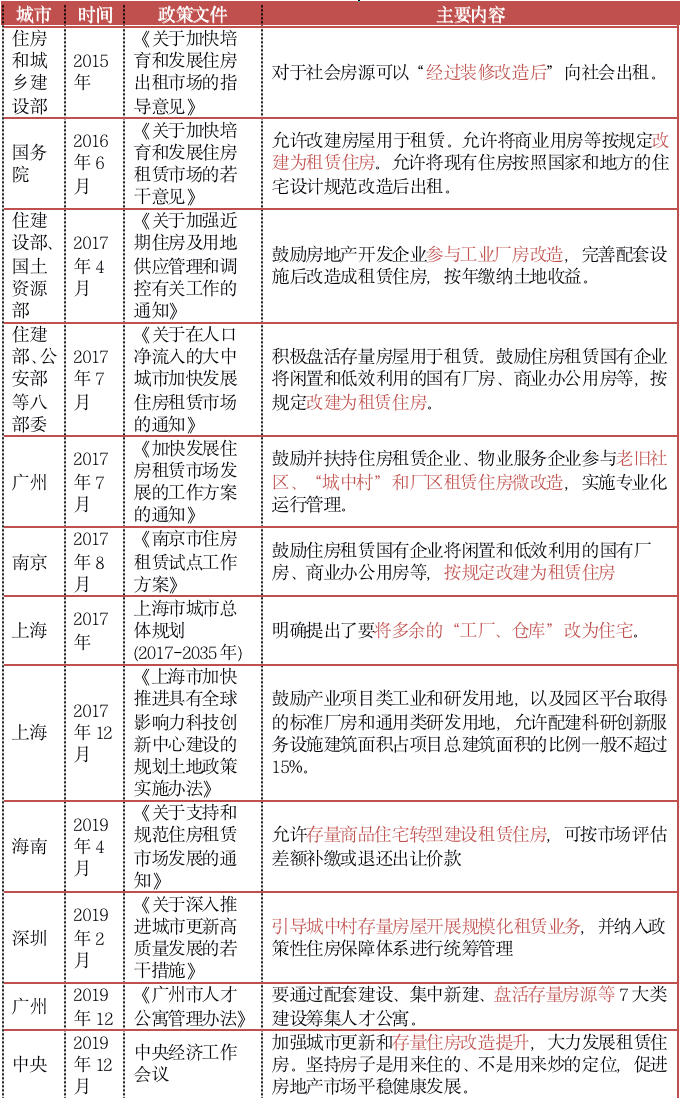 從政策主要內(nèi)容來看,多項政策提及盤活閑置資產(chǎn),提高存量資產(chǎn)利用水平,允許改建房屋,調(diào)整房屋使用性質(zhì),增加租賃供應(yīng),推動市場健康有序發(fā)展。
