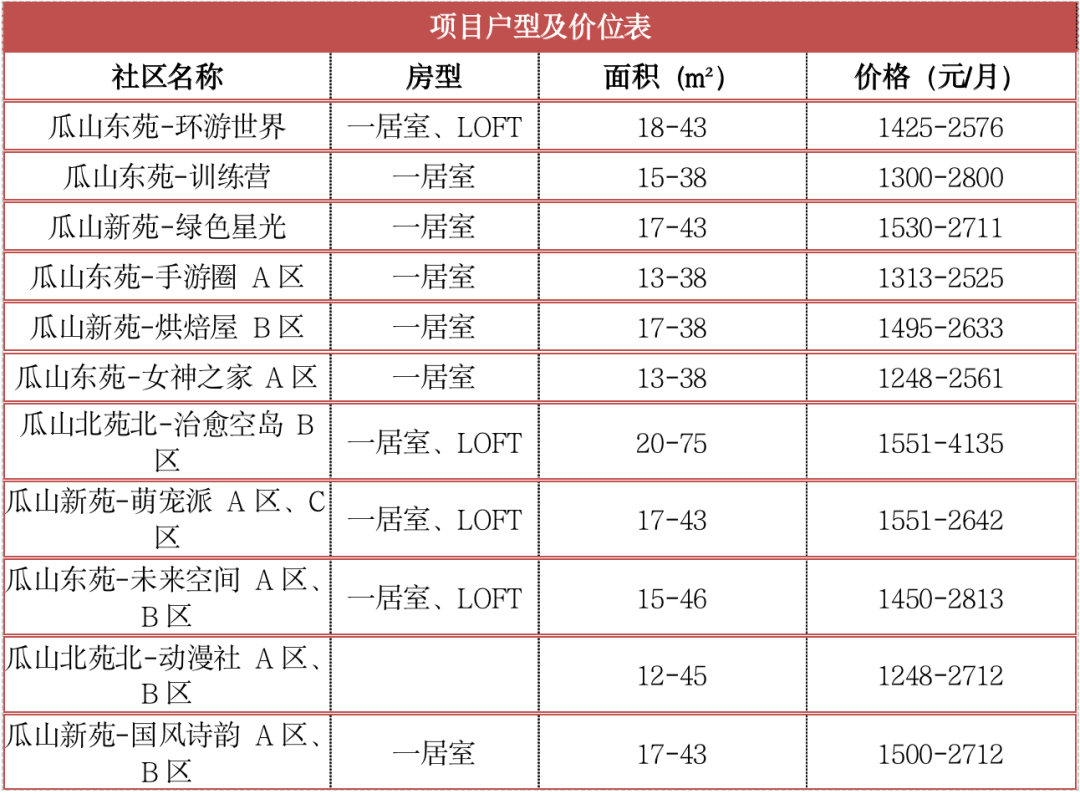 瓜山社區(qū)融合長租公寓、文創(chuàng)辦公、民宿、商業(yè)等多元業(yè)態(tài),整體打造綜合型租賃社區(qū)。