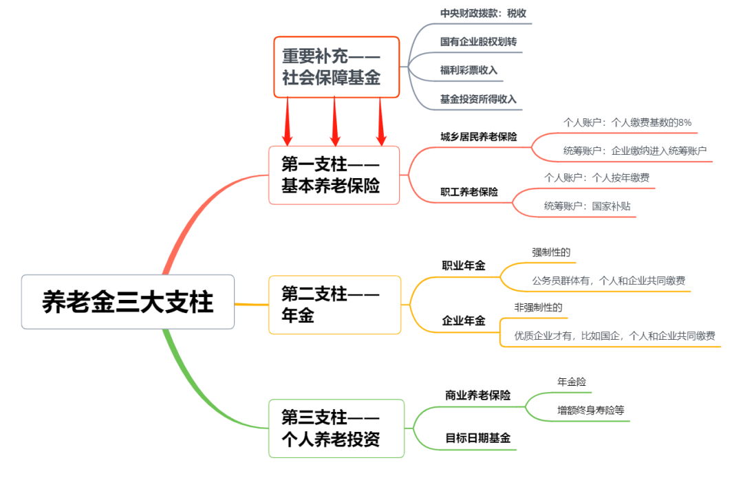 第一支柱是政府提供的普遍性保障,比如我國的居民和職工基本養老保險。