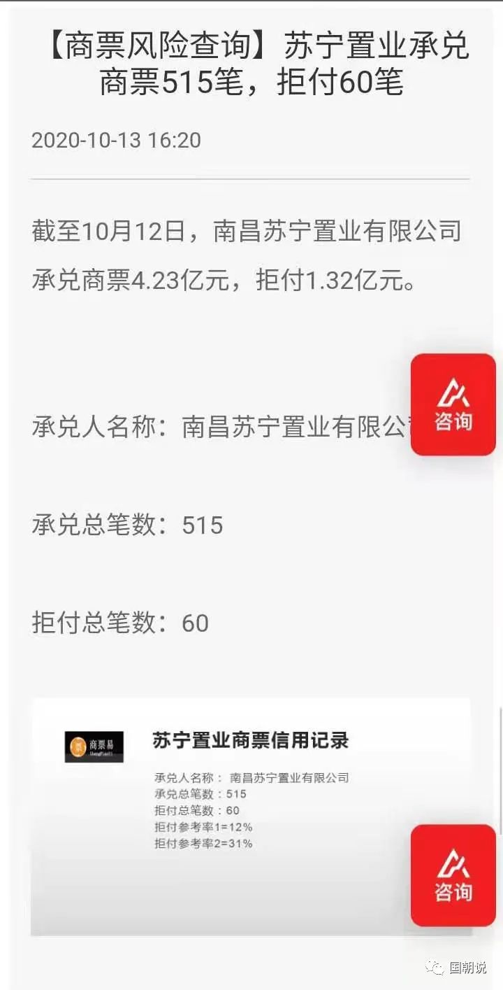 雖然,蘇寧置業(yè)很快補(bǔ)繳了稅款,不過這個(gè)也給我們提了個(gè)醒。2020年下半年,市場上就陸續(xù)傳出蘇寧置業(yè)子公司的商票發(fā)生逾期的事件。