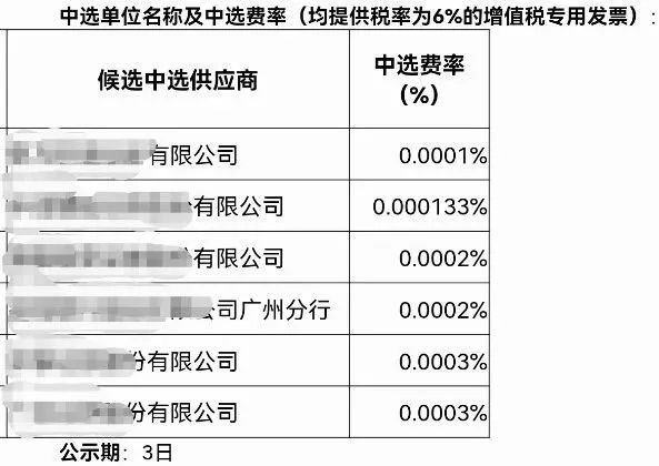 根據某銀行2021年8月9日的公告信息,選聘600億元金融債券發行服務,共有6家承銷商中標,中選費率最低為0.0001%(百萬分之一),最高為0.0003%(百萬分之三)。 也就是說,如果按照最低中選費率計算算,600億元金融債券的承銷費只有6萬元!這和2021年2月某頭部券商1萬元中標某銀行無固定期限資本債券的承銷費率真的是有異曲同工的感覺。