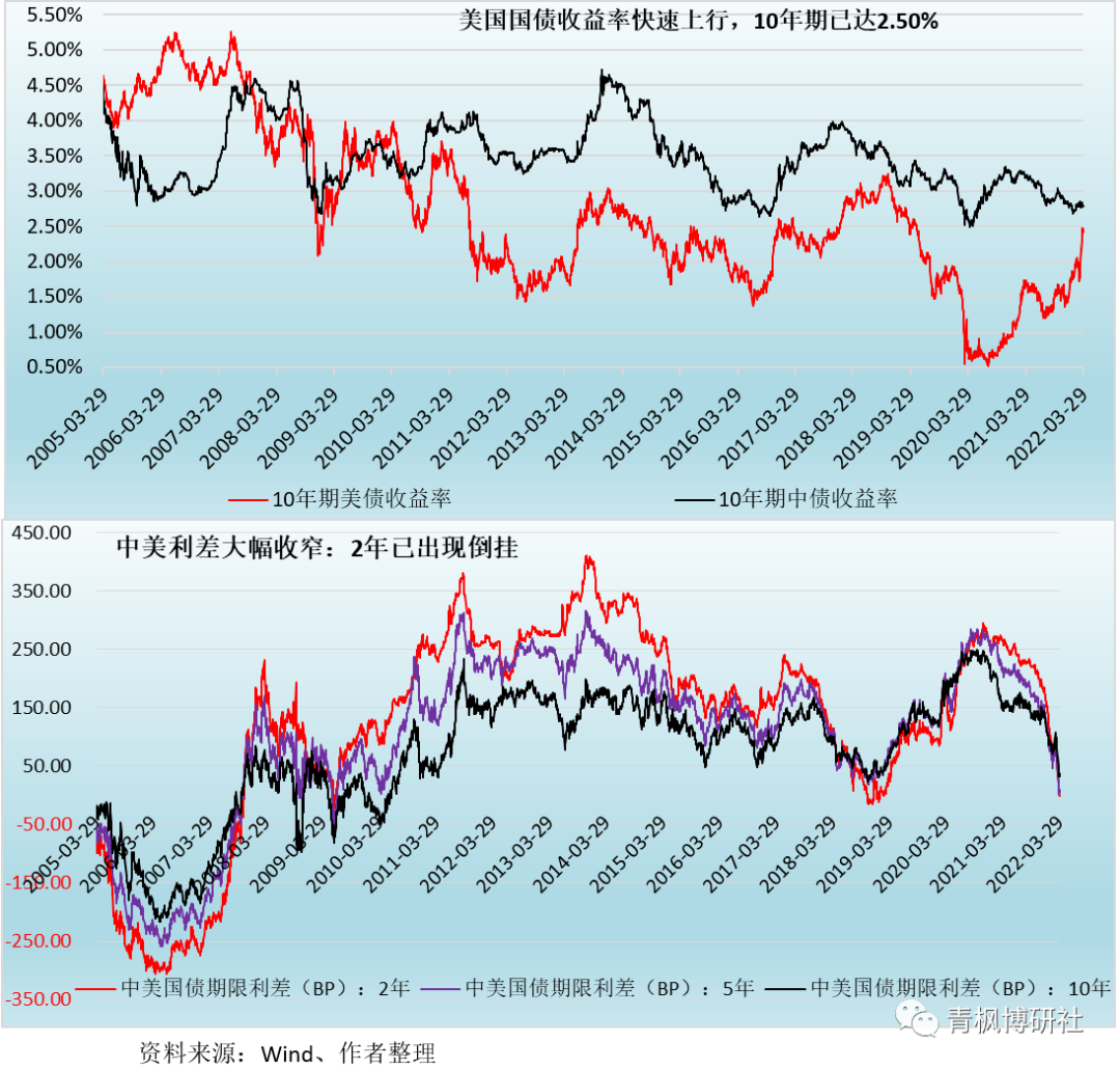 隨著美聯(lián)儲正式邁入加息周期以及縮表可能很快到來,中美期限利差開始出現(xiàn)收窄甚至倒掛以及跨境資本出現(xiàn)異常流動,意味著全年降息預(yù)期正變得越來越弱