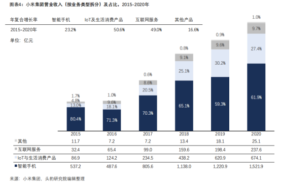 數據層面看,過去五年,小米的AIoT業務和互聯網業務的年化復合增長率分別增長50.6%和49.0%,成為小米業績增長的新動力。