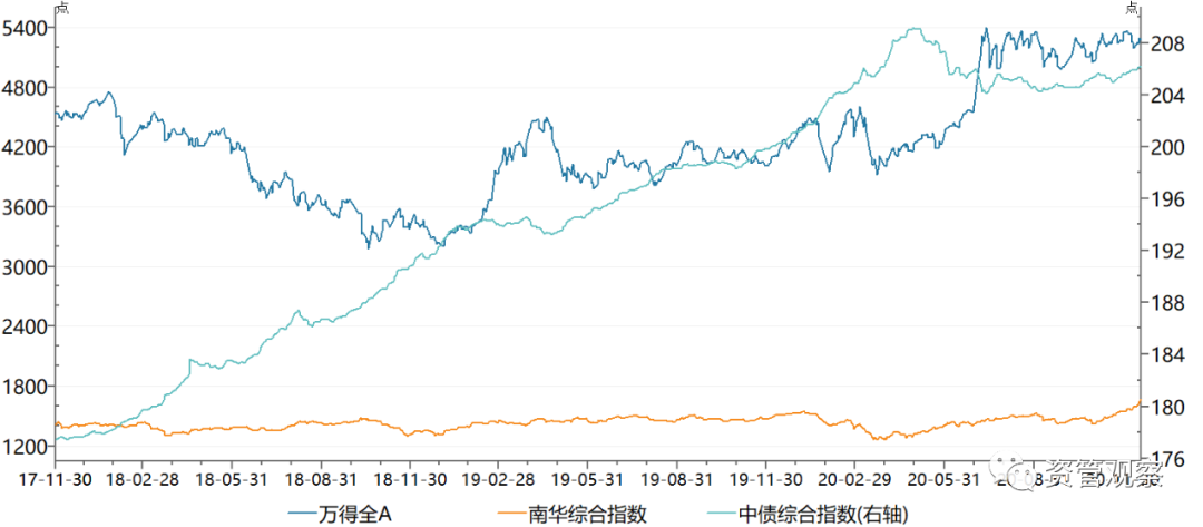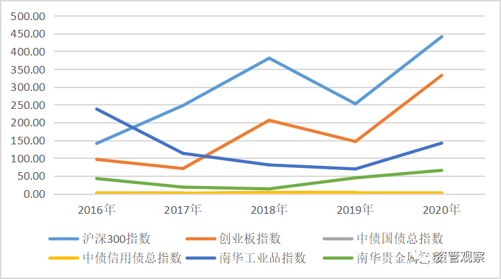 雖然主要大類資產均取得了正收益,不過波動性也處于較高水平。從近年統計數據看,滬深300指數和創業板指數波動率均為近5年最高,大宗商品波動率處于近三年內的最高水平,而債券類資產波動率相對更為平穩。因此,投資者需要擺正好心態,依據自身風險偏好,合理選擇資產種類。