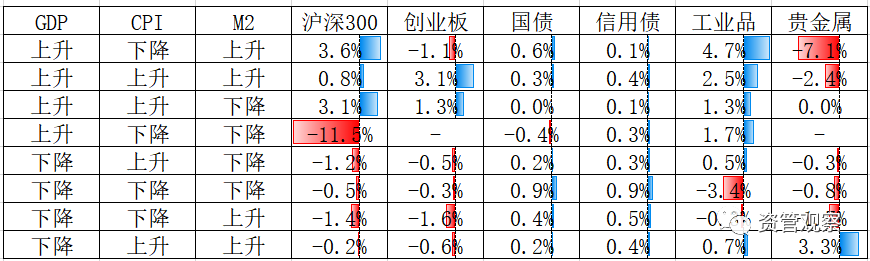 表1:經濟周期與金融周期下的資產價格表現