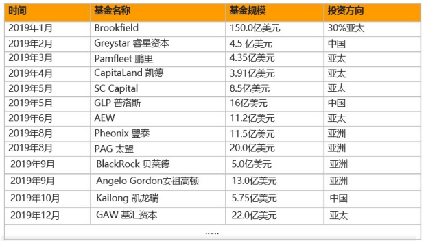 2019年外資亞太地區募資表
