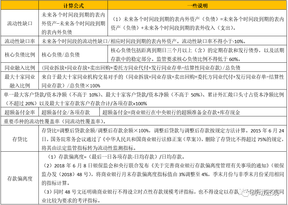 2、監管指標如下: