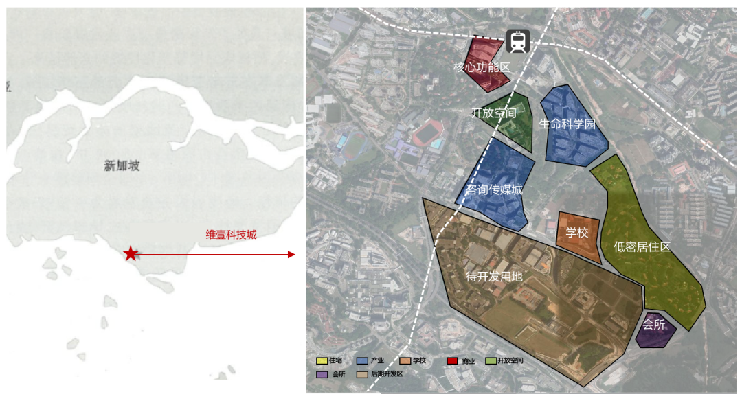項目位于新加坡西南,兩條軌道交通交匯處,打造策略是結合TOD配套商業和科教研發等功能,加上低密居住區的打造,成功吸引并留住人才,促進產業發展,形成“生活-生產-娛樂-教育-醫療-商業”全鏈條自循環城市;并通過科技輻射,助力新加坡向知識型社會轉型。