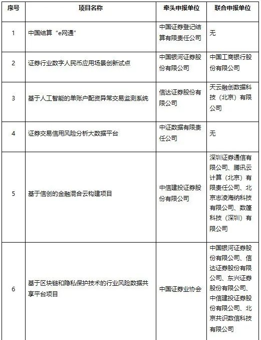 值得注意的是,此次項(xiàng)目中包含一個(gè)關(guān)于數(shù)字人民幣相關(guān)創(chuàng)新試點(diǎn)項(xiàng)目,項(xiàng)目名稱為“證券行業(yè)數(shù)字人民幣應(yīng)用場景創(chuàng)新試點(diǎn)”,由銀河證券牽頭申報(bào),工商銀行聯(lián)合申報(bào)。