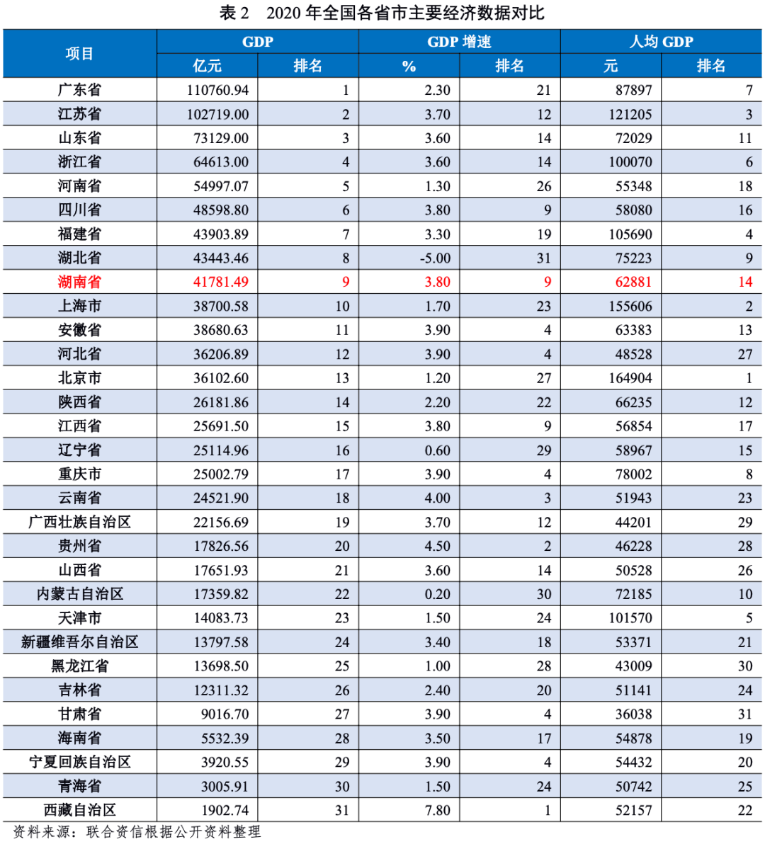 報告概要湖南省整體經濟實力較強,經濟總量位于全國中等偏上水平,人均GDP處于全國中等水平,經濟發展態勢良好。