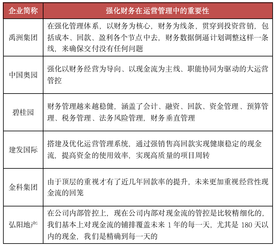 但目前隨著監(jiān)管的調(diào)控持續(xù)趨緊,僅關(guān)注工程節(jié)點(diǎn)顯然不能滿足房企運(yùn)營(yíng)管理的需要,因此很多企業(yè)開始以財(cái)務(wù)視角作為運(yùn)營(yíng)管理的切入點(diǎn),以財(cái)務(wù)為核心,貫穿投資、營(yíng)銷、成本、回款等多個(gè)環(huán)節(jié),不但有助于保證企業(yè)財(cái)務(wù)的穩(wěn)健,也提升了項(xiàng)目的安全系數(shù)。