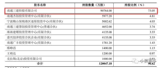從股權結構上看,南通三建股權較為分散,其控股股東為三建控股,持股比例為73.05%,穿透后黃裕輝等8人為公司實控人,屬于民營企業(yè)。