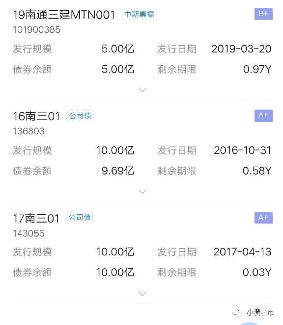 《小債看市》統(tǒng)計,目前南通三建存續(xù)3只債券,存續(xù)規(guī)模24.69億元,全部將于一年內到期。